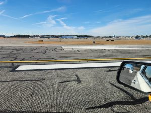 After nearly a month of daily closures, the RIC maintenance division with the assistance of a contractor completed a project to seal asphalt cracks and paint the entirety of Runway 2-20. The runway is RIC’s second longest at 6607 ft in length, and 150 ft in width. Runway 2-20 was last resurfaced approximately 15 years ago, and the stresses of weather and aircraft operations causes cracking on the surface that can result other issues like producing Foreign Object Debris (FOD), vegetation growth, and other potentially hazardous conditions.